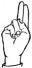 На ћирилици написано МАТЕЈА ГОДОЧЕВИЋ састоји се из 15 слова [?]. Исписано ћириличном једноручном азбуком за глувонеме: